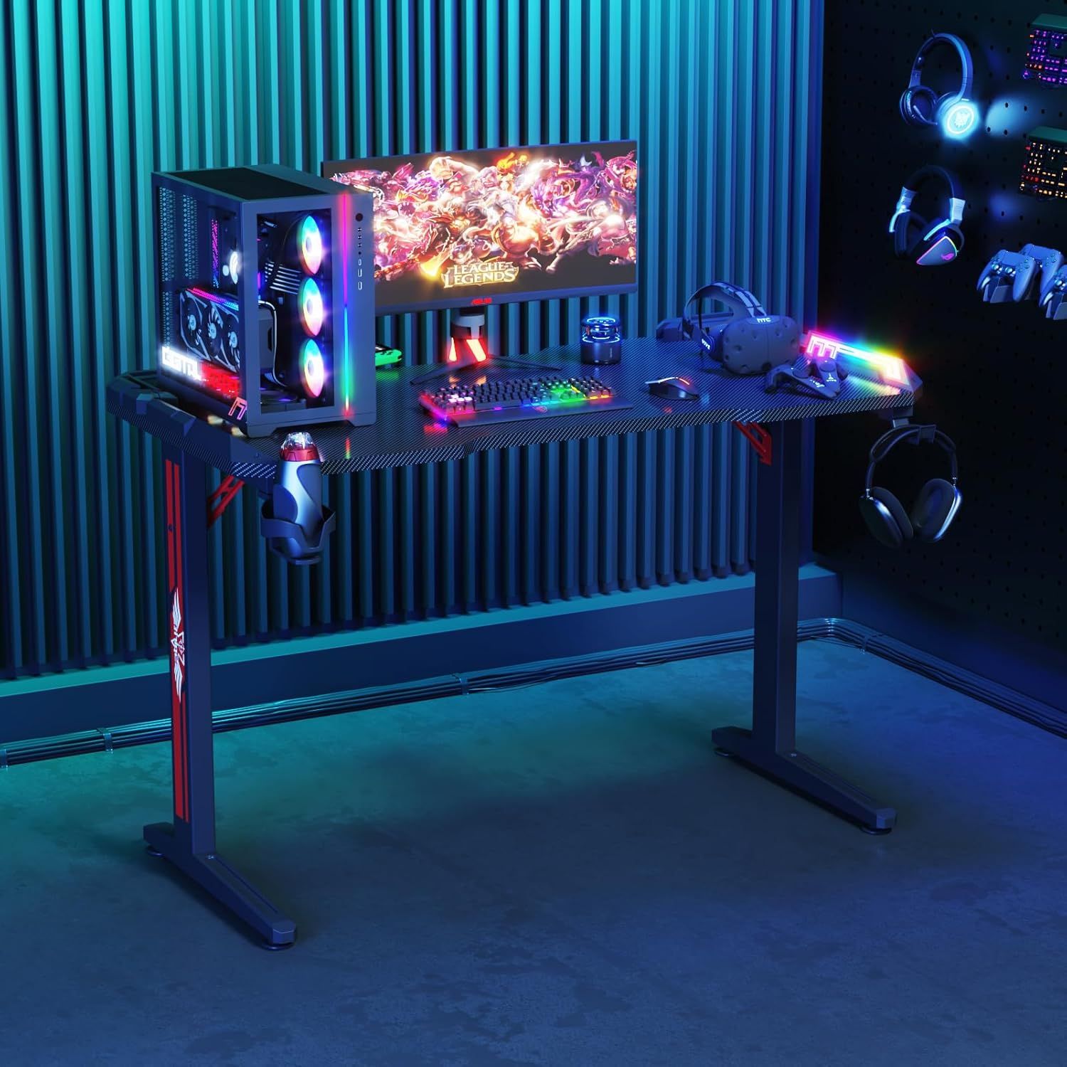Advwin 120cm Carbon Fibre Gaming Desk with RGB LED Lighting